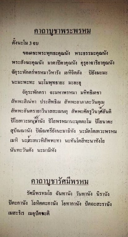 ขอวิธีบูชาพระพรหม พร้อมคาถาอัญเชิญเวลาติดตัวอ่ะครับ