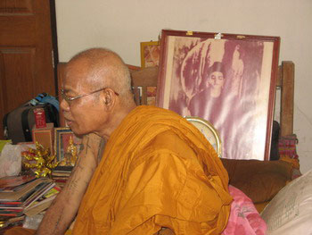 “สมัยเป็นทหารเรือ อาตมาก็ดั้นด้นไปแสวงหาอาจารย์เพื่อขอเรียนวิชา ก็พอจะได้มาบ้าง เช่นหลวงพ่อคง วัดวังสรรพรส องค์นี้เรียนค่อนข้างนาน หลวงพ่อเริ่ม ปรโม วัดจุกกระเฌอ หลวงปู่คร่ำ วัดวังหว้า ส่วนมากจะเป็นวิชาการลงตะกรุด ก็ได้มาอย่างละนิด อย่างละหน่อย ถ้าอย่างเรียนเยอะๆเลยนี่ส่วนมากจะเป็นฆราวาส เช่นโยมคุณตาสืบ ก็เรียนทางทำน้ำมนต์ โยมคุณตาสืบท่านเก่งมาก ชาวบ้านแถวนี้เรียกท่านว่าตาสืบเทวดา ใครโดนของ ผีเข้า เจอตาสืบเป็นเสร็จหมด แกเอาซะอยู่หมัด (ยิ้ม) แล้วก็มีอาจารย์เต็ม ตัวอาจารย์เต็มนี่เดิมทีแกเป็นคนระยอง เป็นลูกศิษย์หลวงพ่อวงศ์ วัดบ้านค่าย อาตมาก็ได้วิชาด้านมหาอุด เรื่องนี้มันมีเหตุ (ยิ้ม) เห็นเวลาที่ไปเบา สังเกตดูเห็นแกชอบขมุบขมิบปาก ถามไถ่ดูก็ไม่ยอมบอกว่าทำอะไร อาตมาก็เวียนพยายามไปหาแก ขี่รถจักรยานไปซื้อของให้แกบ้าง จนในที่สุดแกก็คงรำคาญมั้งเลยให้มา(ยิ้ม) เออ........เรียกว่าอะไรนะ ดูสิแก่แล้วชักจะลืมๆ อ้อ..แกเรียกว่าวิชา “เร่งเบา” (หัวเราะ) เขาเอาไว้เวลาไปธุระเบา ให้ภาวนาอย่าขาด แกเคยท้าให้ชาวบ้านแถวนี้ลองยิงต้นไม้ที่แกไปฉีรดไว้ ปรากฏว่าไม่ออก(ยิ้ม) แล้วก็ไปเรียนกับอาจารย์เปา บุญสังข์ เป็นพวกการสักยันต์ ก็ลูกศิษย์ของอาจารย์เปานี่แหละที่แทงกันกับลูกศิษย์ของตากัน”