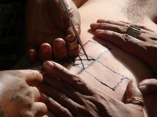สะดุดอีกแล้วครับท่าน ในเมื่อมีผู้สักยันต์เกราะเพชรพระอาทิตย์แล้ว อยากเห็นว่า มีผู้สักยันต์เกราะเพชรพระจันทร์ด้วยหรือเปล่าครับ สักที่สีข้างอีกฝั่งหรือเปล่าครับ